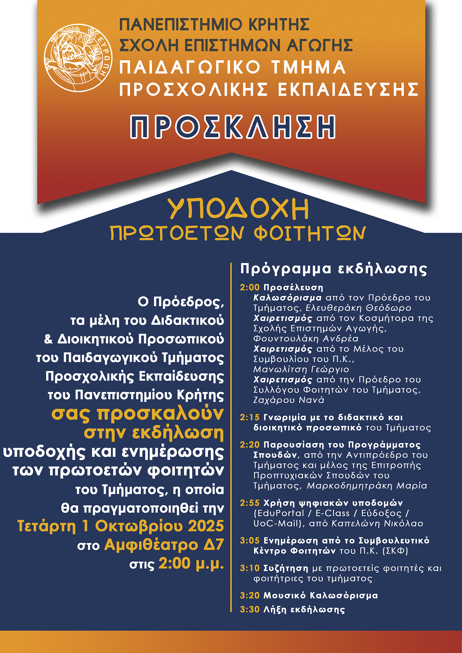 ΥΠΟΔΟΧΗ ΠΡΩΤΟΕΤΩΝ ΦΟΙΤΗΤΩΝ